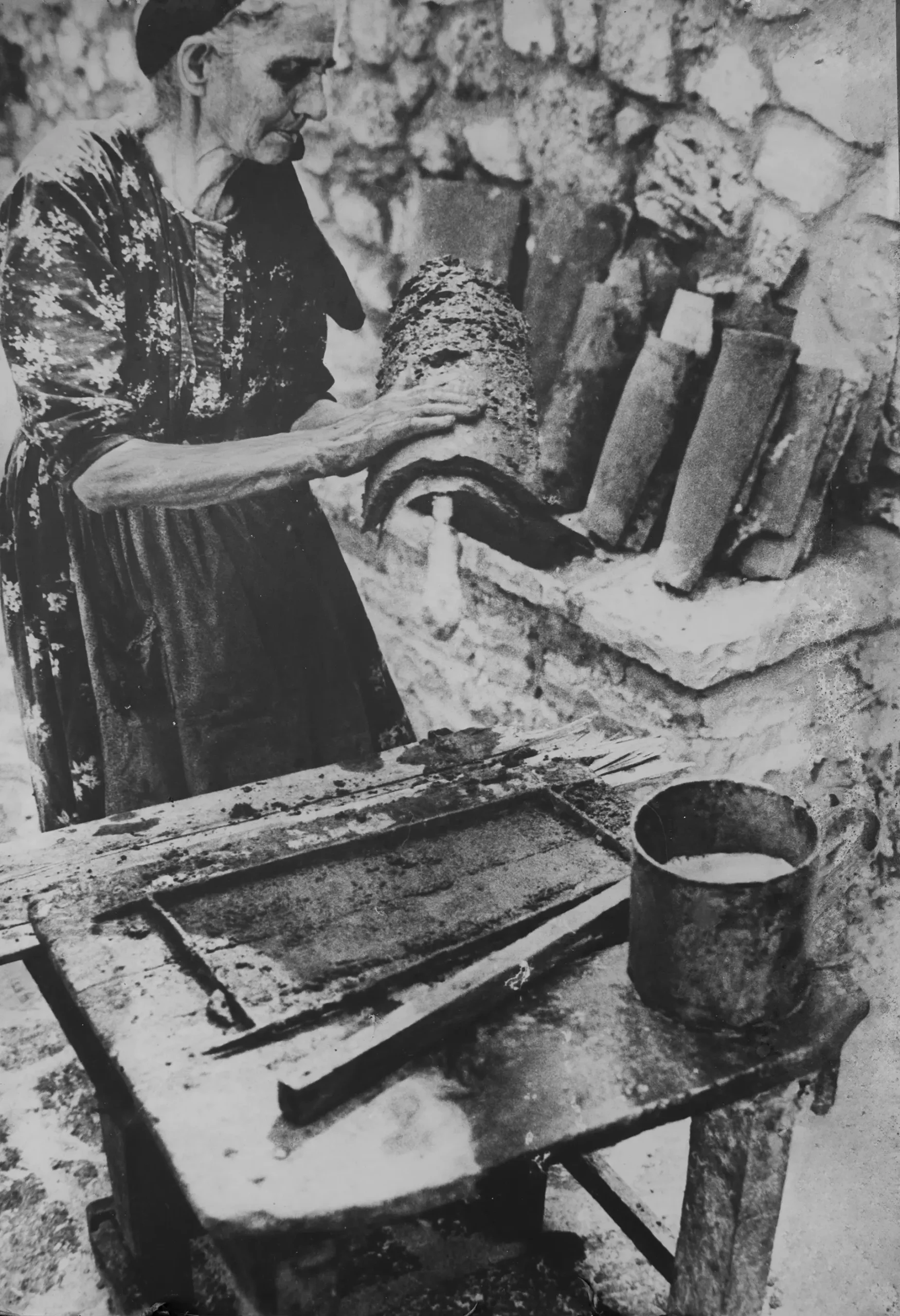 εκτίθενται τα εργαλεία για την επεξεργασία του μαλλιού και του σπάρτου